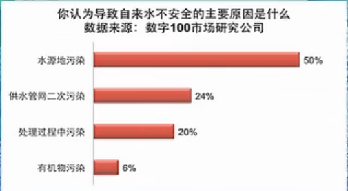 根據(jù)一項(xiàng)調(diào)查自來(lái)水主要污染的問(wèn)題是什么?其中水源地污染占50%,供水管網(wǎng)二次污染和處理中的污染占44%。