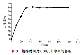 2. 4 攪拌反應(yīng)時(shí)間對CODCr去除率的影響