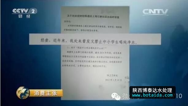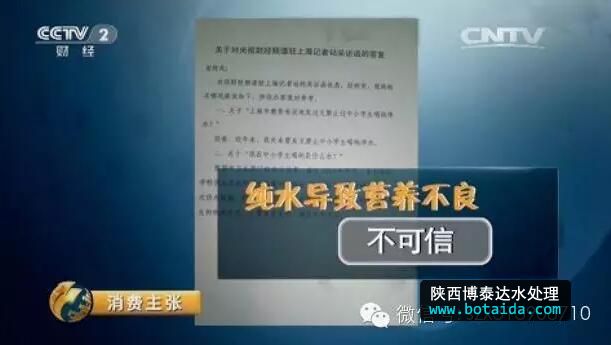 CCTV《消費主張》欄目,辟謠『喝純水會導(dǎo)致營養(yǎng)不良』。北京世紀(jì)壇醫(yī)院副院長指出:“人體內(nèi)營養(yǎng)均衡不可能指望水里的那點成分。我們平常的營養(yǎng),靠水來供應(yīng)的話,非常非常少,所以說,如果說長期喝純凈水,引起營養(yǎng)不良,那跟喝水一點關(guān)系也沒有。”