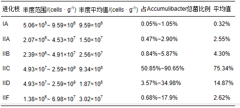 表3 12個樣品中C and idatus Accumulibacter中各進(jìn)化分支的比例