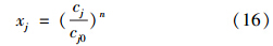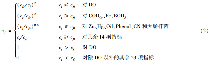 式中,x′j 為水質指標j的規(guī)范值.