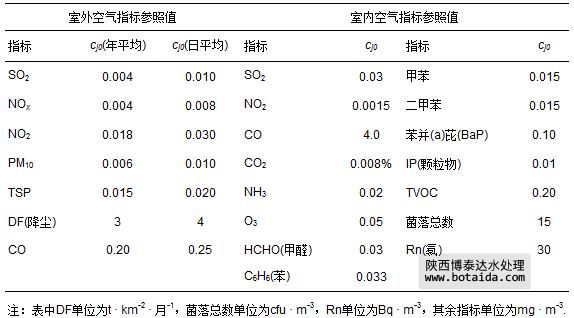 表 2 室內、外空氣29項指標的參照值