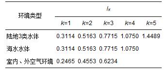 表 3 4類水體及室內外空氣環(huán)境的引力普適指數(shù)的分級標準值Ik