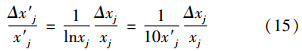 式中,x′j 為指標j的規(guī)范值;xj為指標j的變換值,對4類水體和空氣指標j設定的變換式分別如式(2)~式(7)所示.