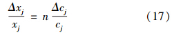 根據(jù)系統(tǒng)靈敏度定義,引力指數(shù)I對指標測值cj的靈敏度Sc如式(19)所示.