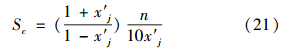 若n固定,將Sc對x′j求導,并令S′c=0,得x′j=-1≈0.4142時,Sc有極小值0.5828n.由于變換式(2)~(7)中,對多數(shù)指標只取n=±2、±1、±0.5.而公式(10)和式(11)中,x′j 取值范圍為x′j∈[0,0.5](對水體),x′j∈[0,0.4](對空氣).當n為上述值時,x′j 分別取為如表 4所示值時,由式(21)計算得靈敏度Sc值如表 4所示.