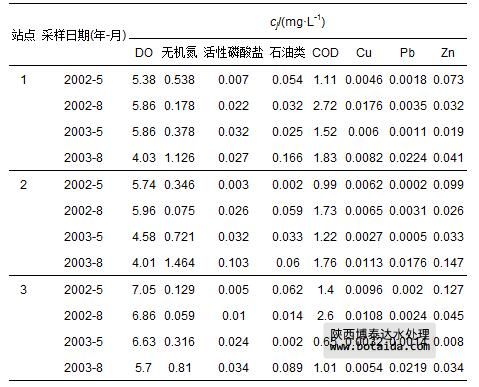 表 7 珠江口2002—2003年3個站點水質指標監(jiān)測數(shù)據(jù)cj
