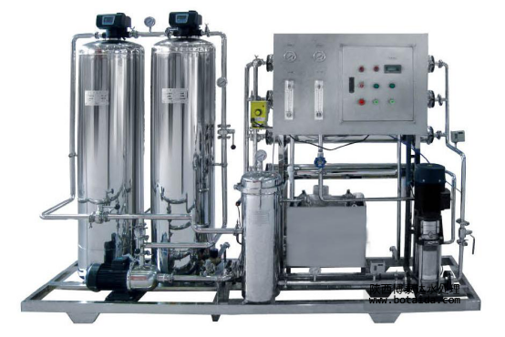 此工藝原理:原水經(jīng)過精細(xì)過濾器、顆?;钚蕴歼^濾器、活性碳過濾器等,再通過泵加壓,利用孔徑為1/10000μm的反滲透膜(RO膜),使較高濃度的水變?yōu)榈蜐舛人?同時(shí)將重金屬、細(xì)菌、病菌等大量混入水中的雜質(zhì)全部去除,從而達(dá)到飲用規(guī)定的理化指標(biāo)及衛(wèi)生標(biāo)準(zhǔn)。