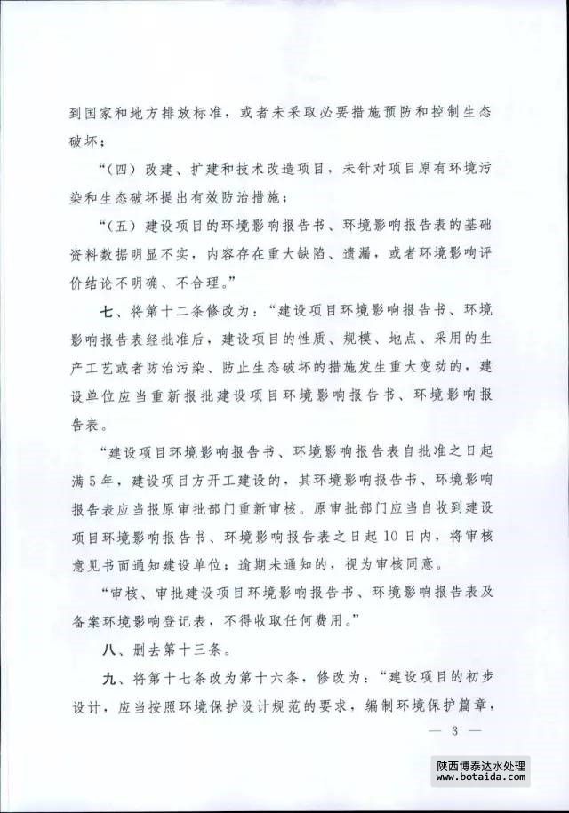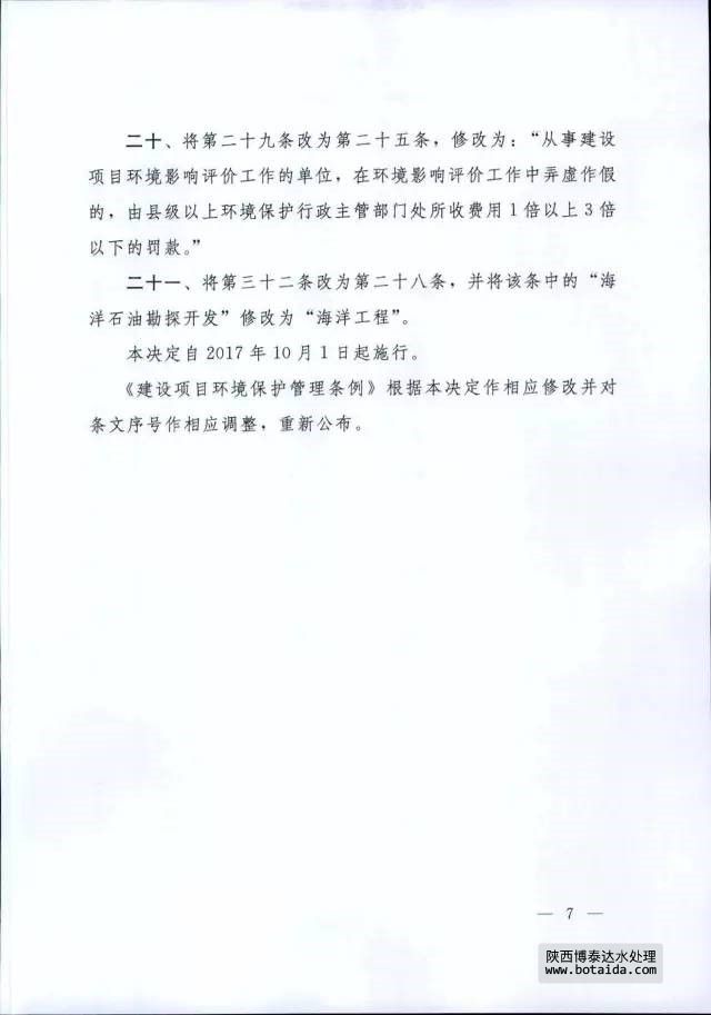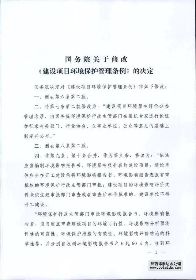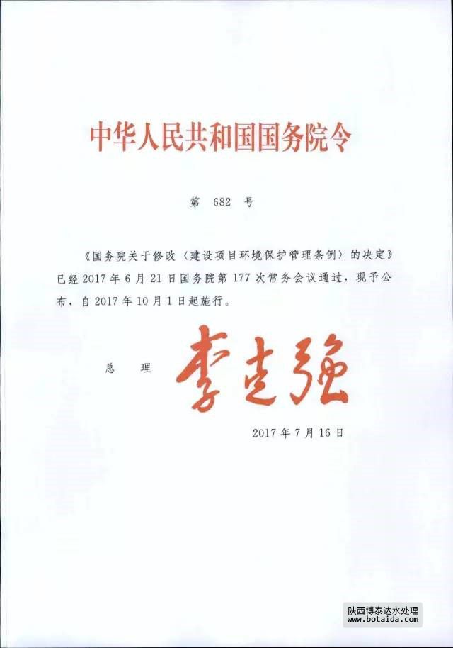 7月16日,國務院以國務院第682號令公布了《國務院關于修改〈建設項目環(huán)境保護管理條例〉的決定》,自2017年10月1日起施行。