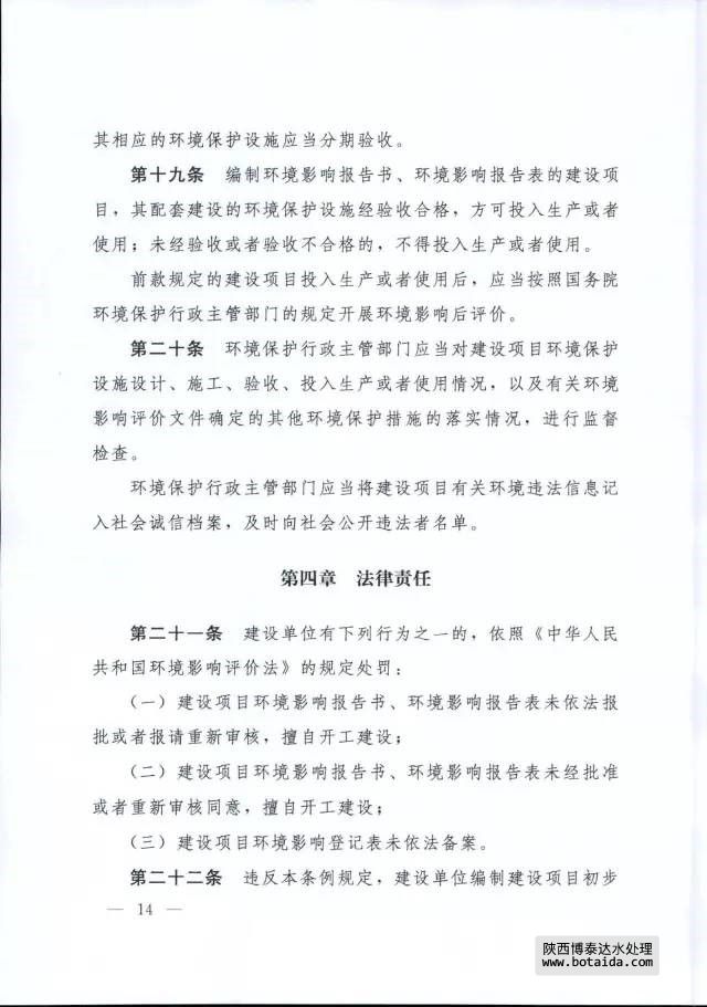 第六條 國家實行建設項目環(huán)境影響評價制度。 建設項目的環(huán)境影響評價工作,由取得相應資格證書的單位承擔。