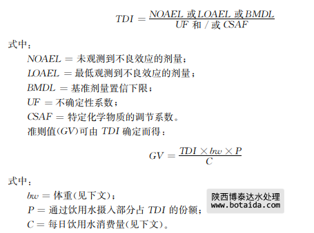多年來,聯(lián)合國糧農(nóng)組織(FAO)/世界衛(wèi)生組織(WHO)的食品添加劑聯(lián)合專家委員會 (JECFA)和聯(lián)合國糧農(nóng)組織/世界衛(wèi)生組織農(nóng)藥殘留聯(lián)席會議(JMPR)已經(jīng)就確定ADIs制 訂了一些原則(FAO/WHO,2009),這些原則已被采納,在適當(dāng)?shù)那闆r下,可以用來制定飲 用水水質(zhì)的準則值。