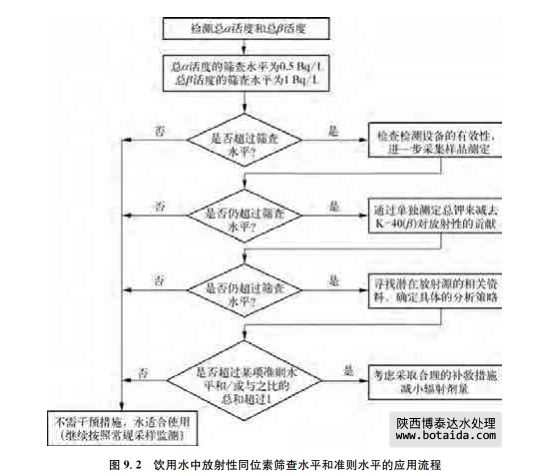 在本準(zhǔn)則的第二版中,根據(jù)總α活度和總β活度的篩查水平分別為0.1Bq/L和1Bq/L 確定了IDC為0.1mSv/年。這個(gè)IDC表示,自然放射源對(duì)年平均放射劑量貢獻(xiàn)不超過5% (見9.1節(jié))。事實(shí)上,后續(xù)的經(jīng)驗(yàn)證明,如果總α活度低于或等于0.5Bq/L,那么總放射劑 量也通常不會(huì)超過0.1mSv/年。因此在第三版準(zhǔn)則中,犐犇犆基于總α活度和總β活度的篩 查水平分別為0.5Bq/L和1Bq/L,在本版準(zhǔn)則中,依舊沿用這一改變。