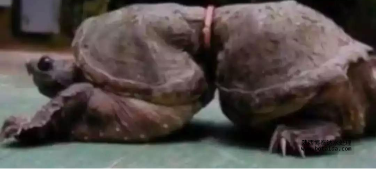 被塑料圈勒到變形的海龜