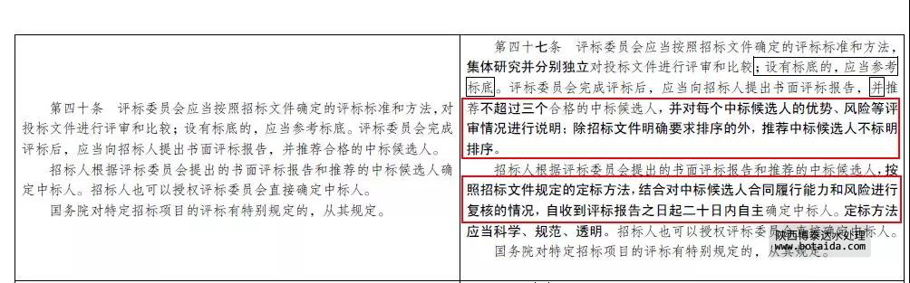 這意味著甲方有著更大的自主選擇權(quán),而評(píng)標(biāo)委員會(huì)只推薦三個(gè)中標(biāo)候選人,而且不用排序。也就是說(shuō),不會(huì)有第一中標(biāo)候選人、第二中標(biāo)候選人、第三中標(biāo)候選之說(shuō)。這也打破了評(píng)標(biāo)委員會(huì)推薦的第一中標(biāo)候選人默認(rèn)為中標(biāo)人的長(zhǎng)期慣例。甲方只需要在三個(gè)中標(biāo)候選人當(dāng)中,自主確定中標(biāo)人。