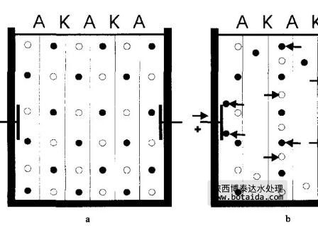 1929年,泡利(W. Pauli)和雅爾科(E. Yalko)首次描述了三室電滲析裝置,置于中間室的料液中的陰離子和陽離子在電場作用下分別進(jìn)入正極室和負(fù)極室。1935年,特奧雷爾(T. Teorell)建立了荷電膜理論,認(rèn)識到陽離子選擇性透過膜含有帶負(fù)電荷的固定離子,陰離子選擇性透過膜含有帶正電荷的固定離子。1939年,馬內(nèi)戈?duì)柕拢‥. Manegold)和卡勞奇(C. Kalauch)首次在三室電滲析裝置中同時(shí)使用陰離子選擇性透過膜和陽離子選擇性透過膜。