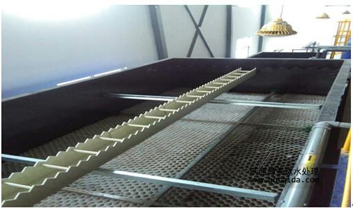 水解酸化池內(nèi)部可以不設(shè)曝氣裝置,控制停留時(shí)間再水解、酸化階段,不出現(xiàn)厭氧產(chǎn)氣階段,前兩個(gè)階段的COD去除率不是很高,因?yàn)樗哪康闹皇菍⒋蠓肿拥淖兂尚》肿佑袡C(jī)物,一般去除率在20%左右,產(chǎn)氣階段的COD去除率一般在40%左右,但這是產(chǎn)生的硫化氫氣體要進(jìn)行除臭處理,且達(dá)到產(chǎn)氣階段的停留時(shí)間要較前兩階段長(zhǎng),也就是要出現(xiàn)厭氧狀態(tài)。缺缺氧池內(nèi)要設(shè)置曝氣裝置,控制溶解氧在0.3-0.8mg/l,利用兼氧微生物及生物膜來降解廢水中的有機(jī)物,接觸氧化池內(nèi)的曝氣器要慎重選擇,既要保證供氧量,又要確保有利于生物膜的脫落、更新。一般不選用微孔曝氣器作為池底的曝氣器。